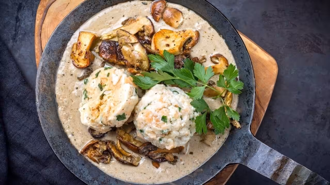 Rien ne ressemble plus à un soir d’automne bien passé qu’un plat de Knödel dans une sauce crémeuse aux champignons. Ces boulettes de pain venues d’Autriche et du sud de l’Allemagne, c’est le confort à l’état pur. Pas de sophistication, pas de technique intimidante.
