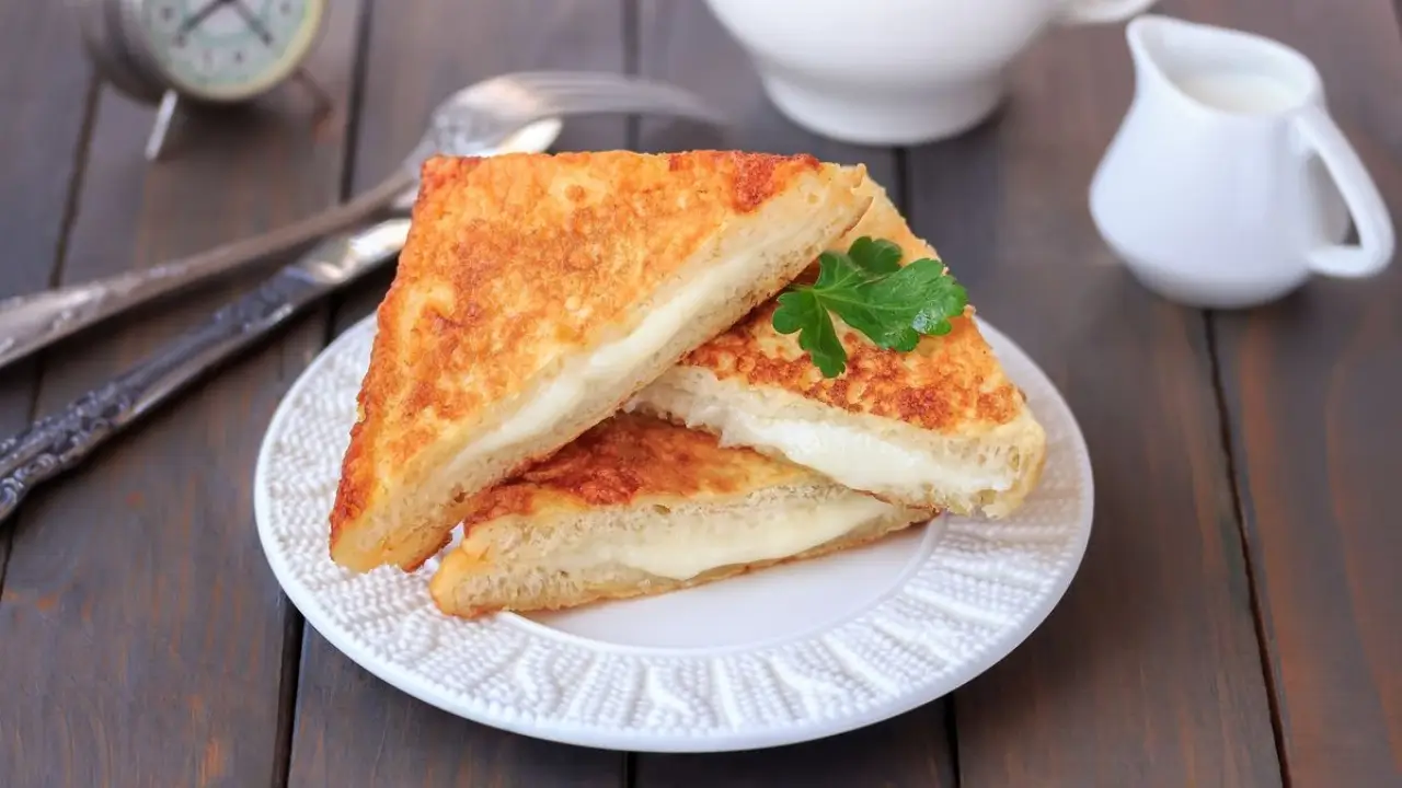 - Montez les sandwiches : pain, mozzarella salée, pain. Pressez, retirez les croûtes, coupez en triangles ou carrés. Pourquoi presser ? Pour sceller les bords et empêcher le fromage de s’échapper à la première chaleur.