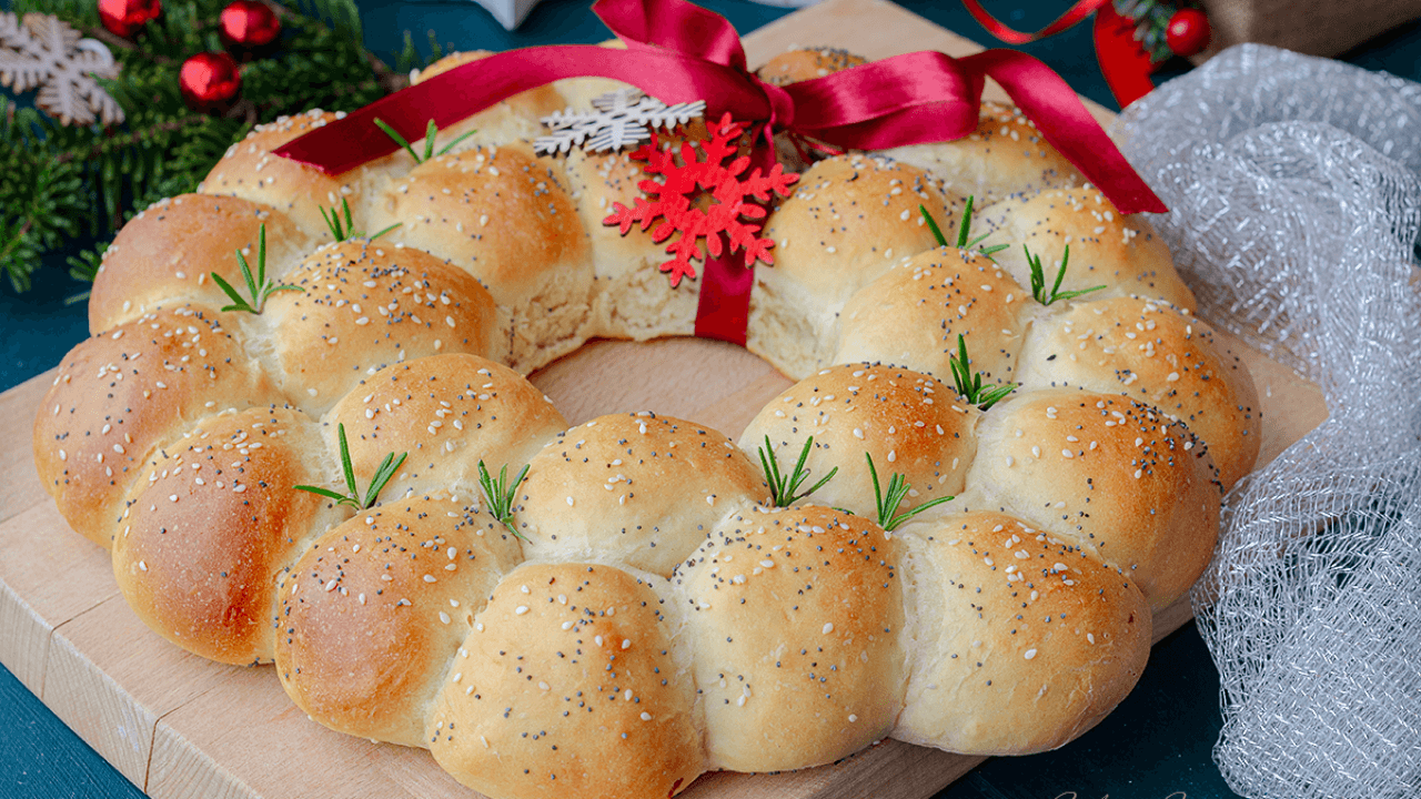 - Formez une couronne avec les petits pains ou la pâte feuilletée sur une plaque.