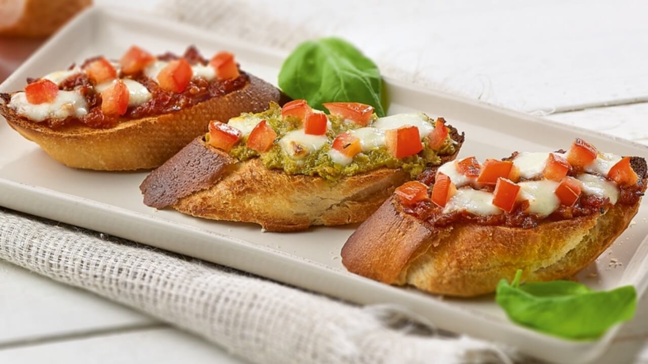 Un filet de pesto sur le dessus relève le tout et apporte une note herbacée qui évoque le Sud. Prêtes en quelques minutes, elles sont idéales pour ouvrir le repas avec légèreté.