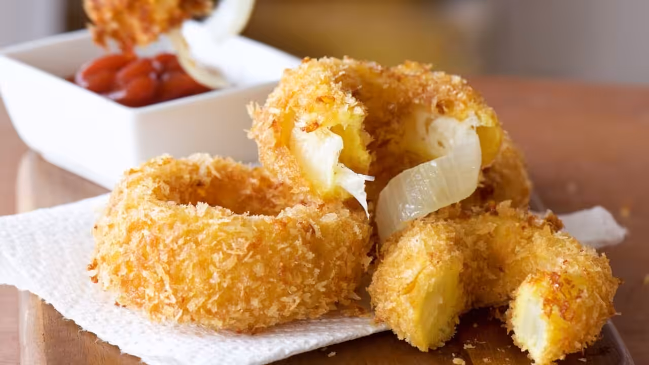 Rondelles d’oignon à la mozzarella croustillantes